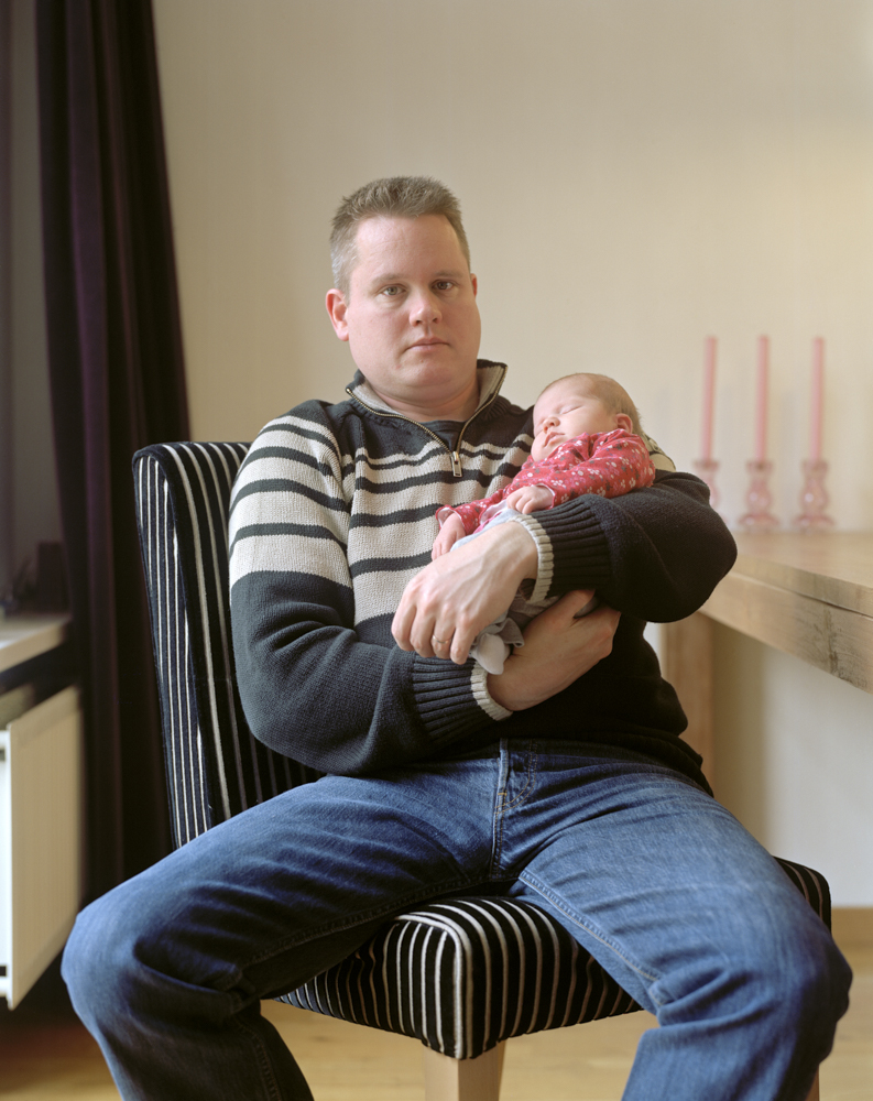 Since 2003 I started to photograph men who are in their first year of fatherhood. I started this project because I wanted to capture the pride, love and vulnerability of men who start a new chapter in their lives; being a father. I was curious if they had the same connection as the mothers often display.